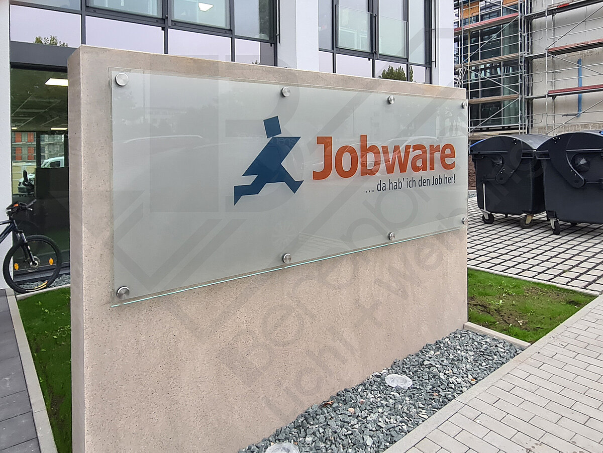 Partnerfläche aus Acrylglas mit Folie beschriftet und satiniert